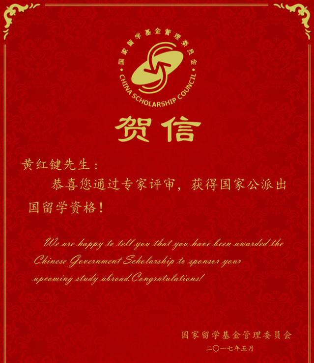 国家留学基金委经过两个半月的严格评审,已于5月27日正式公布“国家建设高水平大学公派研究生” 项目录取名单。Beat365材料科学与工程学院2014级硕士研究生黄红键与其女朋友食品与生物学院硕士研究生孙曼兮双双通过评审,获得项目资助,均将前往日本秋田县立大学攻读博士学位。