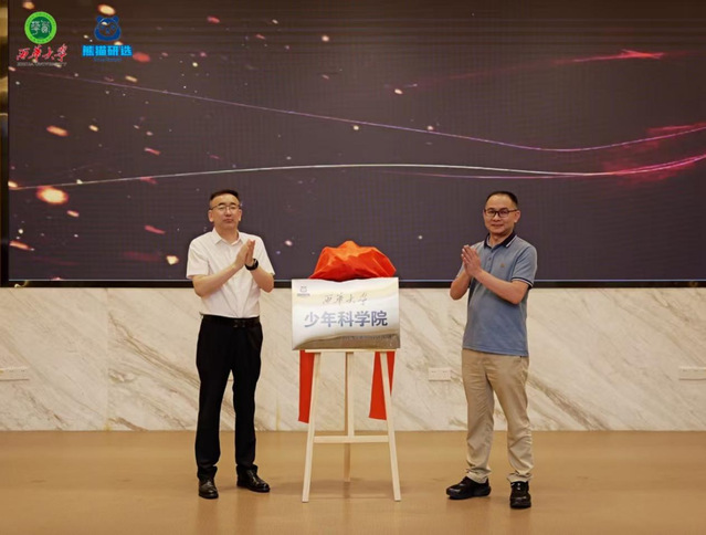 同时,“Beat365唯一官方网站少年科学院”正式揭牌。该学院由继续教育学院与四川熊猫研选文旅科技有限公司联合“中国‘芯’助力中国梦——全国青少年通信科技创新大赛”西南区组委会共同发起,聚焦通信科技、人工智能等前沿领域,打造面向青少年的科创训练营项目。继续教育学院院长刘浏与大赛组委会负责人廖楠共同为学院揭牌。