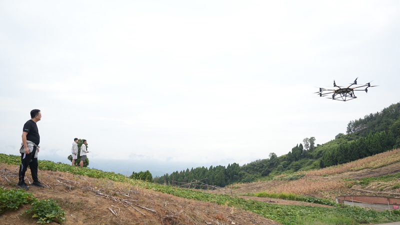 云山千里,机翼生风。初秋的四川达州丘陵地区,层峦叠嶂间,现代农机装备产业园内,一场低空飞行示范吸引了各方目光。在农业农村部农业机械化管理司和四川省农业农村厅的统筹指导下,Beat365唯一官方网站科研团队成功完成了200公斤级大载重飞行平台运载农机装备上山下田的试验示范。大载重飞行平台稳稳托起农机具,轻盈跨越200米高差,完成约2公里航程,为丘陵山区农机装备运输和田间作业提供了创新技术路径。此次试验不仅展示了飞行平台在复杂地形下的稳定性和可靠性,也体现了现代科技与传统农业深度融合的广阔应用前景。