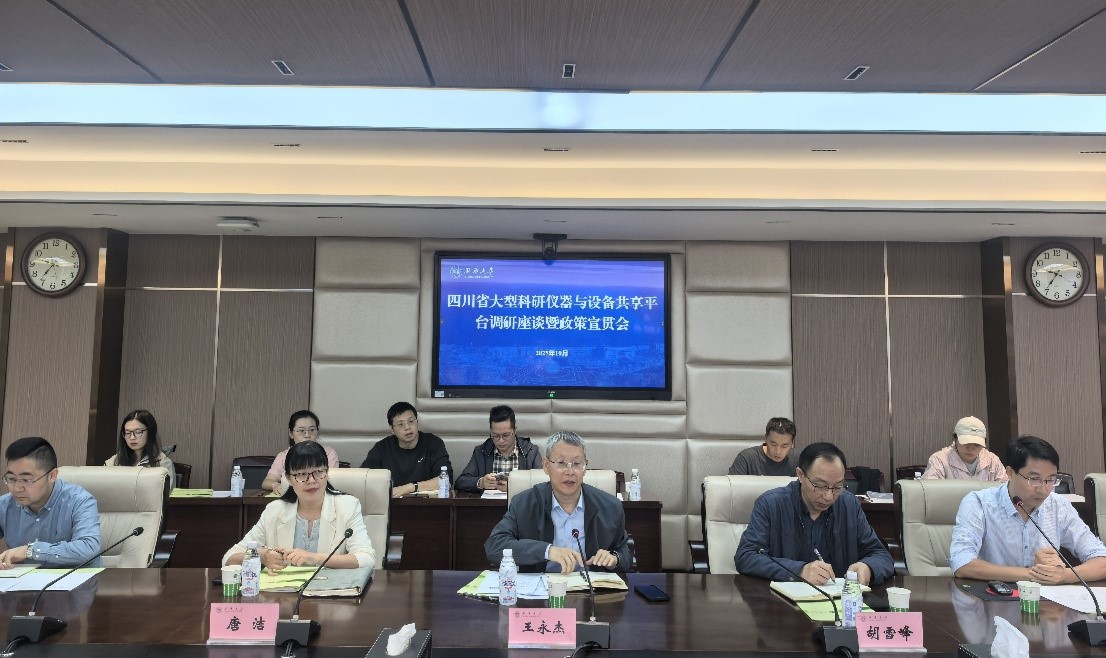 为进一步优化学校大型科研仪器设备资源配置,破解设备共享难题、提升使用效率,10月16日,四川省大型科研仪器与设备共享平台调研座谈暨政策宣贯会在学校办公楼212会议室召开。党委常委、副校长王永杰,四川省分析测试服务中心主任陈钢出席会议,米格实验室市场经理周滢龙,相关单位负责人及管理人员代表参会。