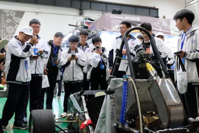 在汽车与交通学院,师生们参观了大学生科创基地的赛车队与省重点实验室。从图纸设计到赛道实战,赛车轰鸣的背后,是学子们创新精神与实践能力的生动诠释。