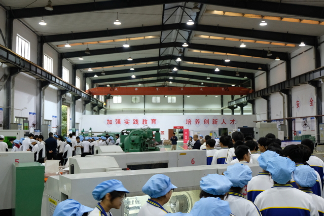在机械工程中心,同学们通过VR虚拟仿真技术学习机械制造要点,并走进机床加工现场,亲身感受数控机床等实训设备的操作。这些展示也让同学们了解到机械工程在服务现代农业中的实际应用。