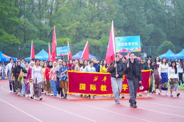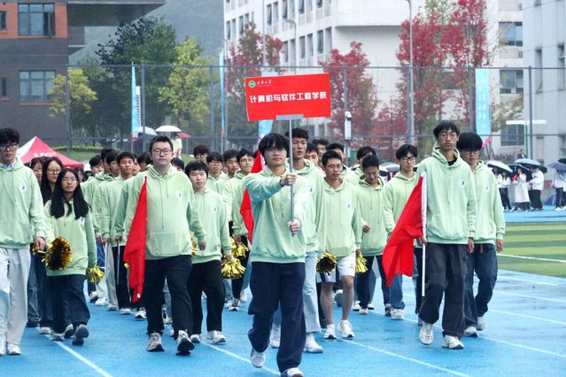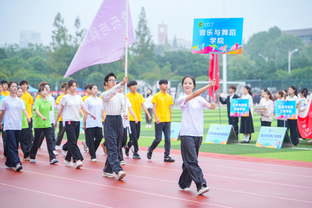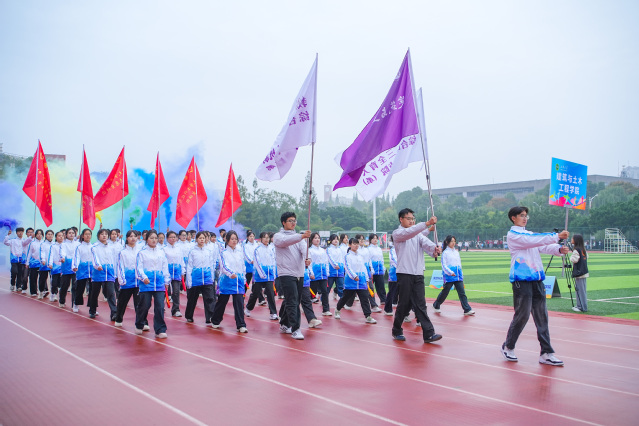 在《运动员进行曲》的激昂旋律中,运动会盛大开幕。各支方队带着饱满的精神,身姿挺拔,目光坚定,迈着整齐划一的步伐走向主席台。他们的目光传递着青春能量,响亮的口号展示着西华风貌。航空航天与智能装备学院方队手握模型,尽显航空人的创新活力与实干精神;音乐与舞蹈学院方阵舞姿曼妙,尽显蓬勃朝气和青春活力;电气与电子信息学院方队目光专注,展现科技风采与探索热情;汽车与交通学院方队在方程式赛车引领下,以严谨姿态与硬核实力,彰显创新底气;国际教育学院方队的留学生们身着各国服饰,尽显文化交流的包容与魅力……体育学院方队压轴登场,一段活力四射的体育舞蹈,瞬间点燃全场激情。各方队步伐铿锵,目光炽热,激情交织,为运动场注入了蓬勃的青春气息。