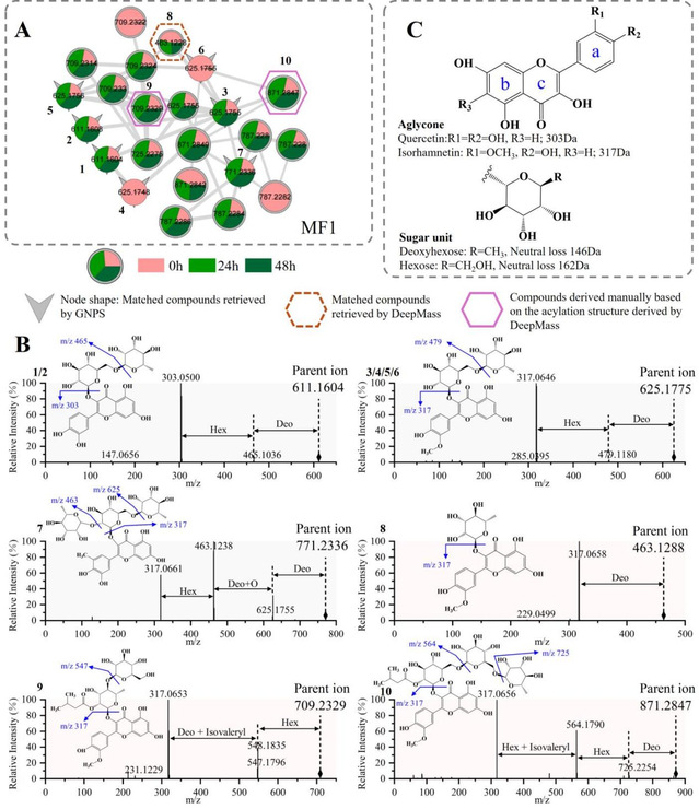 Fig. 1. Molecular family 1 (MF1) analysis and putative compound identification using DeepMass v2.
