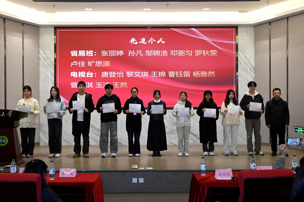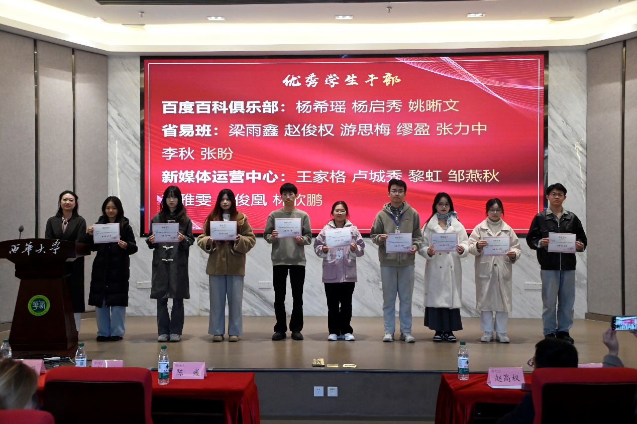会上对2025年度表现突出的“优秀学生干部”与“先进个人”进行了表彰。陈彧、赵高权与宣传部龚翠艳老师分别为获奖同学颁发荣誉证书与聘书,勉励他们再接再厉,发挥模范带头作用。