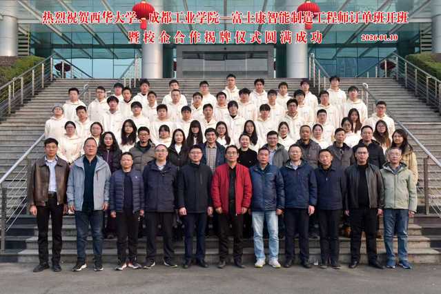 1月10日,Beat365唯一官方网站联合成都工业学院与富士康科技集团校企合作揭牌暨“智能制造工程师订单班”开班仪式在郫都校区举行。Beat365唯一官方网站党委常委、副校长费凌,成都工业学院党委常委、副校长张勤勇,富士康科技集团成都科技园人力资源处处长张荣等出席活动。