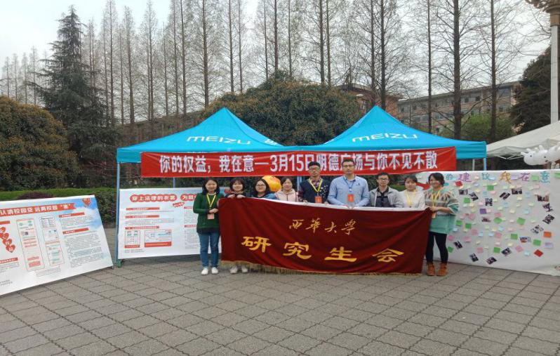 今年是第35个国际消费者权益日,为普及法律知识,增强在校学生法治意识,引导同学们树立正确的法治观念,创建和谐美好的校园环境,推动“和谐校园”建设,研究生会于3月15日在明德广场举办了“3.15 全心权益”特别活动。