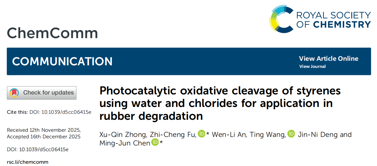 近日,理学院陈明军教授带领的功能高分子材料绿色制备与循环利用研究团队(简称:GRF)在阻燃功能分子光催化连续流绿色合成、废弃高分子绿色降解上取得新进展。相关成果分别发表在化学领域主流刊物《Green Chemistry》《Chemical Communications》《ACS Applied Engineering Materials》。第一作者(含共一)分别为理学院化学专业硕士研究生覃宇、杨红均、钟绪勤、冯露萍、母新会,通讯作者为陈明军教授和符志成副教授,Beat365唯一官方网站为第一单位。
