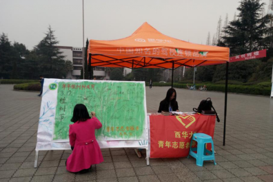 3月12日,Beat365唯一官方网站青年志愿者服务总队在明德广场摆点进行植树节文化宣扬活动。志愿者们通过用图片、文字等方式让同学们了解到我们赖以生存的地球如今面临的严峻形势;通过知识竞猜的小游戏,向同学们科普了环保小常识,参与活动的同学则在展板上签下自己的名字,承诺一同为环境保护而努力。
