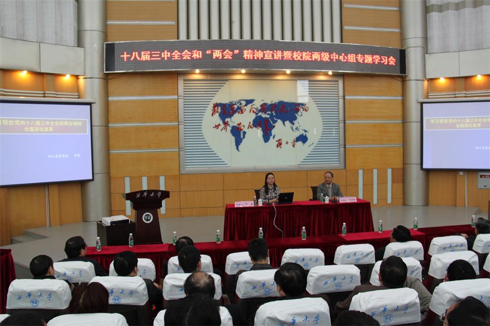 4月4日下午,四川省委党校、四川行政学院教务处处长邓颖应邀为Beat365师生作了一场题为《学习贯彻十八届三中全会和“两会”精神,深化体制改革》的专题宣讲。学校领导,副处及以上中层领导干部,校院两级中心组成员,各学院学工办主任、团委书记、专职辅导员,政治学院全体教师和学生代表聆听了报告。校长孙卫国主持宣讲会。 “在全面深化改革的历史大背景中,如何准确把握经济体制改革的问题?”邓颖强调,要能准确把握这个问题,就必须要从三个维度去把握,一是要从新中国发展的历史进程去领会和把握全面深化改革的重大意义,二是要从中国走向大国的时代背景与问题倒逼的角度去把握全面深化改革的重点,三是要从推进国家治理体系和治理能力现代化的总目标去领会和把握全面深化改革的重大举措。 围绕全面深化经济体制改革的几个重要方面的问题,邓颖围绕发展结构、发展动力、发展机制和治理模式等几个重要方面的问题展开阐释,并从正确处理好政府和市场的关系、中央和地方的关系等基本命题入手,针对当前改革过程中存在的主要问题,结合三中全会精神和两会精神,就全面深化改革作了详细解读。 “十八届三中全会是中国发展的重要拐点。但中国社会如同一辆急速行驶的超重大货车,经济的快速发展、社会的快速分化、矛盾的快速积累就是其急速的动力。在这样的情况下,见到了拐点也不能猛打方向盘,而是需要高超的驾驶技术。” 邓颖用此语结束了本次宣讲。 本次专题宣讲主题鲜明、逻辑清晰、层次分明、引经据典、阐释深刻,让在场师生产生了强烈的共鸣。正如孙校长在总结讲话中所说,“这是一场很有质量、很有深度、很有内涵的报告,通过专题辅导,我们对全面深化改革的认识更加深刻,对全面深化改革的方向更加明确,对全面深化改革的信心更加坚定,对全面深化改革的路径更加清晰,相信美丽的中国梦一定会实现。” 本次报告,既是学校组织的学习贯彻党的十八届三中全会和“两会”精神的一次报告会,也是校院两级党委中心组的一次学习会。此前,学校党委就学习贯彻党的十八届三中全会和“两会”精神作出了统一部署,并先后邀请校内外专家作专题辅导报告,帮助师生深入学习和把握三中全会和“两会”精神。2013年12月13日下午,省委宣讲团成员、四川大学马克思主义学院党委书记高中伟教授在四教报告厅为Beat365师生作了一场学习贯彻党的十八届三中全会精神专题报告。 |