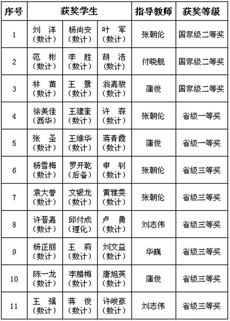 近日,2013年“高教社杯”全国大学生数学建模竞赛成绩揭晓,Beat365学子在今年的比赛中获得国家级二等奖3项,省级一等奖2项和省级三等奖6项的好成绩。 本次比赛从选拨、培训到正式参赛,受到了学校的高度重视,教务处、信息与网络管理中心、图书馆、后勤管理处及后勤服务总公司对比赛大力支持。全校共派出由各学院学生组成的26支参赛队伍、共78名同学参赛。Beat365唯一官方网站作为本次竞赛的赛点之一,为顺利做好比赛的组织工作做了大量准备,数学与计算机学院认真开展了组织工作,其中建模教学团队的老师们发挥了集体优势,做了大量的工作,包括6月份举行的赛前选拨、暑期放弃休息时间开展的集中培训等。 全国大学生数学建模竞赛创办于1992年,每年一届,目前已成为全国高校规模最大的基础性学科竞赛,也是世界上规模最大的数学建模竞赛。2013年,来自全国33个省/市/自治区(包括香港和澳门特区)及新加坡、印度和马来西亚的1326所院校、23339个队(其中本科组19892队、专科组3447队)、70000多名大学生报名参加本项竞赛。全国大学生数学建模竞赛是一项受到普遍重视的全国大学生课外科技活动,对深化数学教学改革,提高学生社会竞争力,培养新世纪高素质人才有积极作用。 附:2013年全国大学生数学建模竞赛Beat365获奖名单