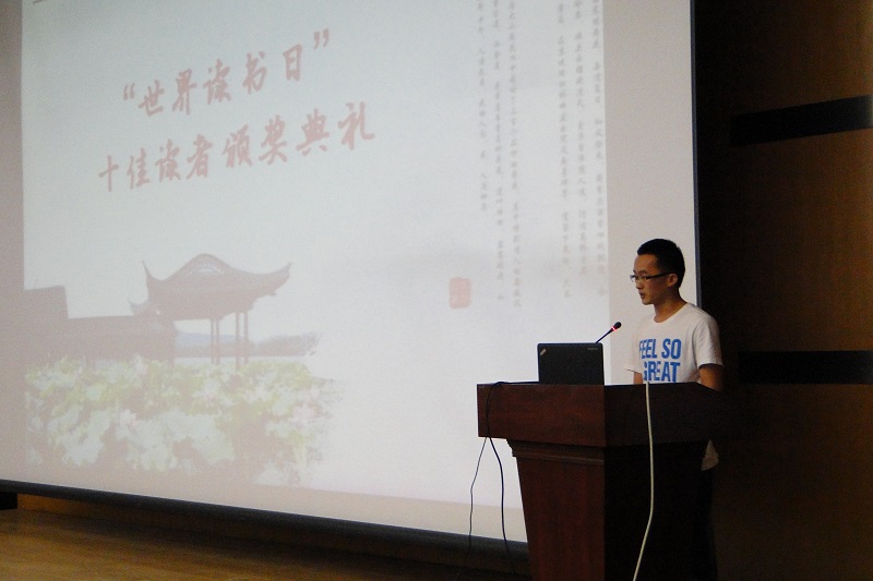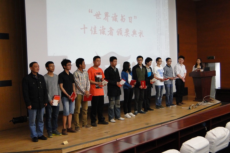 4月23日中午,Beat365“4.23”世界读书日典礼暨“十佳读者”颁奖仪式在图书馆报告厅举行。来自全校各个学院近200名同学参加了此次颁奖仪式,图书馆馆长吕先竞、校团委副书记易宇峰、图书馆副馆长彭国莉、郑邦坤出席了本次活动。