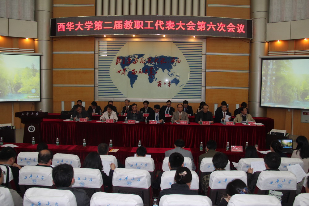 4月10日下午,Beat365第二届教职工代表大会第六次会议如期举行。教代会的110名正式代表参加会议,非正式代表的工会主席、各部门主要负责人、各学院党政主要负责人、部分离退休人员列席会议,校党委副书记王小林主持会议。 本次大会在庄严的国歌声中拉开序幕。首先,校长孙卫国作了《校长工作报告》。他强调,在过去的一年,Beat365深入贯彻党的十八大精神,不断深化教育改革,稳步提高教学质量,加强重点素质教育建设和示范课程建设;研究生培养、学位建设与师资队伍建设工作取得新的进展;科研工作取得重大进展,在权威学术期刊SCI、SSCI上发表论文127篇,获得专利25项。另外,Beat365在公共服务体系、校园建设、招生就业等方面取得显著成果,通过深入开展党的群众路线教育实践活动,基层干部队伍建设和反腐倡廉建设得到加强。展望2014年工作,学校将继续加强培养“卓越工程师”力度;加强省部级重点研究中心建设;继续开展国际交流与合作;狠抓学生工作和招生就业工作,以立德树人为根本任务,以学生党建为龙头,深入开展“青年马克思主义者”培养工作,落实招生阳光工程,提升就业质量;加强党建思想政治工作,深入学习宣传党的十八届三中全会精神,加强网络文化育人和易班建设工作。 计划财务处处长谢合明作《财务工作报告》。他总结了Beat3652013年财务收支情况,报告了Beat3652014年财务预算收支情况。提案工作委员会主任、校办主任费凌向大会报告了教代会二届五次会议提案办结及教代会二届六次会议提案征集情况。此次共征集提案51份,正式代表提案49份,非正式代表提案2份,初步立案率为75%,代表们就教职工福利待遇、西华苑物业管理、附属实验学校、校园周边环境建设、校园一卡通使用范围等教职工关注的问题进行了提案,并得到了提案工作委员会的立案处理。经费审查委员会主任、政治学院院长万远英向大会报告了本届教代会、工会经费审查情况。校工会常务副主席王代言向大会报告了教职工医疗互助会实施情况并就提交大会审议的《Beat365唯一官方网站教职工代表大会实施细则》等四个文件作了说明。会上,参会代表对机关作风进行了测评打分。 随后,与会代表分成五个小组进行了分团讨论。各位代表围绕提交大会审议的《Beat365唯一官方网站教职工代表大会实施细则》等四个文件,以及西华苑环境整治与物业管理、子弟校与幼儿园发展问题、校园周边环境整治和校内存在的安全隐患、一卡通适用范围扩大和食堂食品质量等问题,纷纷建言献策。 下午四点半,闭幕式在行政楼一楼报告厅举行。校工会常务副主席王代言宣读了大会决议。决议指出,大会认为校长工作报告对2013年工作的总结客观真实,实事求是,对2014年的工作部署切实可行,重点突出。大会审议通过了新修订的《Beat365唯一官方网站教职工代表大会实施细则》等四个文件,会后将报学校党委批准实施。 校党委书记张小南作了总结讲话。张书记对本次会议的成功召开表示祝贺,对代表们关心支持学校的改革发展表示感谢。他说,教代会是校务公开的重要载体,开好每年的教代会是全校教职工政治生活中的一件大事。本次会议对进一步统一全校教职员工的思想,坚定信心,汇聚力量,推动学校各项工作再上新台阶具有重要意义。张书记强调:一要继续坚持全心全意依靠教职工办学的方针,巩固党的群众路线教育实践活动成果,进一步加强各级领导班子建设,问政于民、问需于民、问计于民,切实改进工作作风,提高服务师生的能力和水平,特别是要千方百计解决教职工反映强烈的民生问题,凝聚人心、汇集力量,不断推动和谐校园的建设;二要坚定不移地走内涵式发展道路,继续实施特色发展战略、开放式发展战略和人才强校战略,加强学校治理能力建设,完善内部治理结构,全面推进优势学科建设,强化人才队伍建设,创新人才培养机制,打造以社会主义核心价值观为引领的具有西华特色的校园文化,不断提升办学质量和人才培养质量,为服务地方经济社会发展作出更大贡献;三要紧紧围绕中心任务,服务改革发展大局,切实履行教代会的职能,不断推动师德师风建设和校风、学风的进一步转变,进一步推进依法治校,推进学校管理的科学化、民主化和程序化,促进学校全面协调可持续发展。 今年是党和政府全面深化改革的第一年,也是学校全面推进落实“十二五”规划目标任务的关键之年。大会号召,全体教职员工团结一心,扎实工作,勇于创新,为实现学校“十二五”发展规划目标,为把Beat365建设成省内一流、国内知名的教学研究型大学共同努力奋斗。