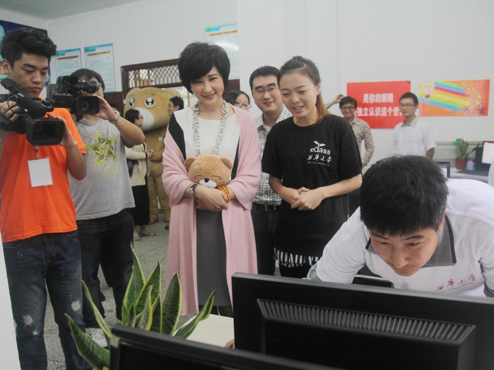 校党委书记张小南,校党委副书记王小林,正厅级调研员钱进与吴小莉女士交流 吴小莉女士参观易班工作站“我愿沿着凤凰的轨迹展翅高飞” 座谈会吴小莉女士为25位学子颁发“吴小莉励志奖助学金”2000余名西华学子聆听小莉公开课 |