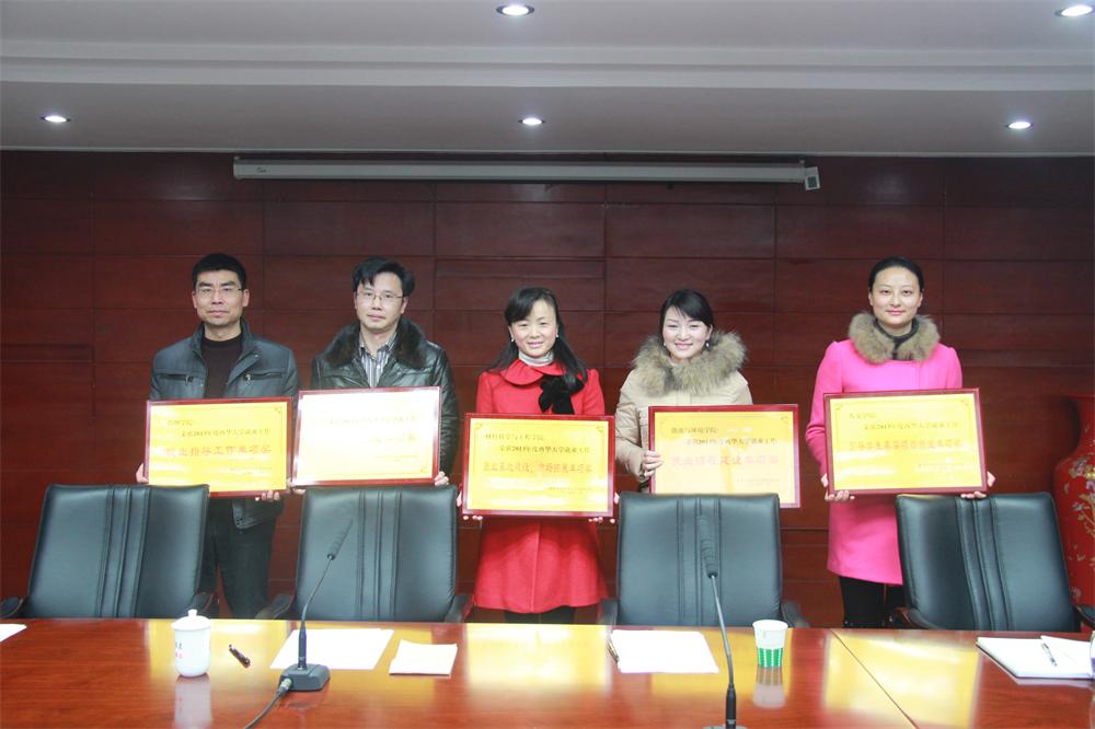 附:2013年度学生工作单项奖、就业工作单项奖和校园文化建设优秀成果奖名单 一、2013年度学生工作单项奖(共8个) 学生党团建设单项奖 人文学院 辅导员队伍建设单项奖 外国语学院 学风建设单项奖 生物工程学院 毕业生文明离校单项奖 体育学院 困难学生资助工作单项奖 电气信息学院 学生心理健康教育与服务工作单项奖 数学与计算机学院 学生第二课堂活动单项奖 经济与贸易学院 易班建设工作单项奖 政治学院 能源与环境学院 二、2013年度就业工作单项奖(共5个) 就业课程建设单项奖 能源与环境学院 就业基地建设、市场拓展单项奖 材料科学与工程学院 就业目标完成单项奖 数学与计算机学院 就业指导工作单项奖 管理学院 引导学生基层项目就业单项奖 人文学院 三、2013年校园文化建设优秀成果奖名单 一等奖(1项): 党委宣传部、学生工作部、校团委《建设Beat365唯一官方网站易班 构筑校园网络文化新家园》 二等奖(2项): 1.校团委《打造梦想平台 激发梦想力量——“这是我们的中国梦”系列活动》 2.人文学院《以人文通识教育为依托,建设Beat365唯一官方网站特色校园文化》 三等奖(3项): 1.经济与贸易学院 《高校学生寝室文化建设——学生公寓团工委寝室文化节》 2.材料科学与工程学院 《自主创办电子杂志:<材子>》 3.体育学院 《“礼仪、廉耻、忍耐、克己、百折不挠”——弘扬跆拳道文化内核 创新校园文化建设》