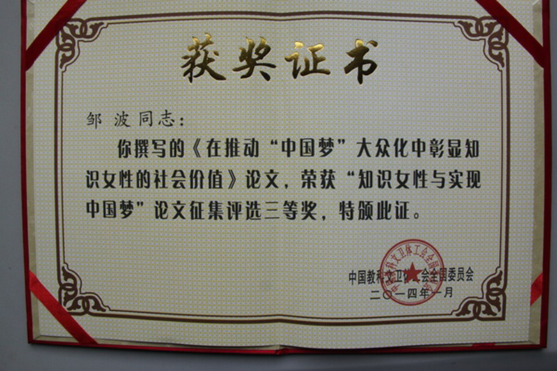 2013年6月中国教科文卫体工会全国委员会开展了“知识女性与实现中国梦”论文征集评选活动。近日,此次论文征集评选活动的结果揭晓,Beat365工会组织申报、推荐的人文学院邹波老师撰写的《在推动“中国梦”大众化中彰显知识女性的社会价值》论文荣获此次论文征集评选活动的三等奖。 中国教科文卫体工会全国委员会开展此次活动,旨在以此为契机,进一步重视和加强女职工理论研究工作,创新和完善女职工理论研究工作机制,鼓励和带动更多的知识女性参与到理论创新与实践中来,推动全国教科文卫体工会女职工理论创新工作再上新台阶。 |
