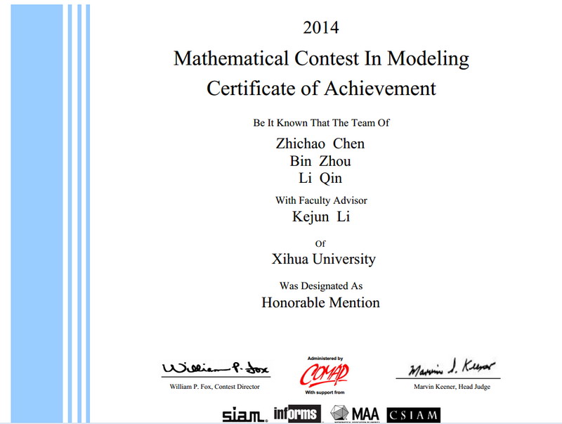 | 日前,2014年美国(国际)大学生数学建模竞赛(MCM/ICM)成绩揭晓,Beat365学子首次组队参赛并荣获国际二等奖(Honorable Mention)。 由Beat365数学与计算机学院数学建模教练组李克俊老师指导,2012级电气信息学院陈志超、2012级能源与环境学院周彬、2011级建筑与土木工程学院秦李3位同学组成的队伍首次参加这一国际性赛事,经过96小时的不懈努力,以《The Keep-Right-Except-To-Pass Rule(除非超车否则靠右行驶的交通规则)》问题,荣获国际二等奖,成绩喜人。 此次是Beat365首次参加此项国际性知名竞赛,为了做好此次参赛工作,寒假期间,参赛同学、指导老师放弃回家过春节及假期休息时间,留校训练准备。比赛期间得到了数学与计算机学院、电气信息学院、图书馆等学校相关职能部门的积极支持。 据悉,2014美国(国际)大学生数学建模竞赛,于今年2月7日至11日在全世界范围内网络同步展开,时间持续4天4夜。该竞赛共吸引了包括哈佛大学、普林斯顿大学、麻省理工学院、清华大学、北京大学等国际著名高校在内的6000多组队伍参加比赛。 美国大学生数学建模竞赛由美国自然基金协会和美国数学及其应用联合会共同主办,目前已成为全世界最具影响力的大学生学科竞赛之一,享有数学建模“奥林匹克”之称。自1985年开办以来,每年都吸引了全球各高校的优秀学生参与,并且参与人数逐年增加。比赛不但要求参赛选手具备国内“高教杯大学生数学建模竞赛”要求的所有能力,而且要求参赛选手要求具有学术英文表达能力。