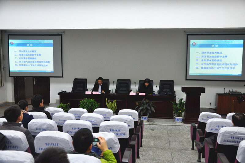 12月1日上午,中海油研究总院首席工程师、Beat365唯一官方网站能源与环境学院客座教授李清平博士应学院邀请在1B-201作了关于“走向深水的海洋工程——水下油气田开发技术现状与趋势”的主题报告。报告会由能源与环境学院主持工作副院长宋文武教授主持。