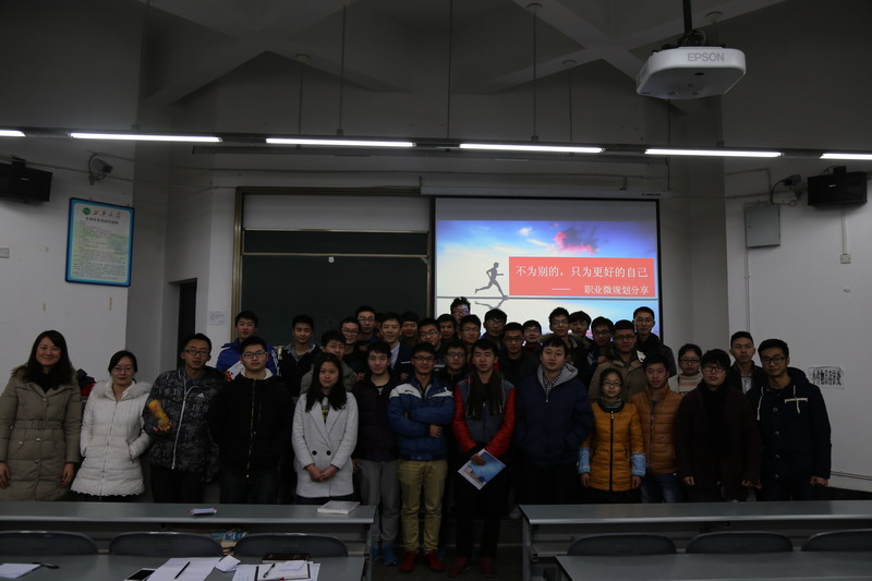 1月4日晚7时,电气与电子信息学院在6B-301教室举办了职业生涯微规划讲座,本次讲座由学院06级校友杨镇瑜主讲,学院辅导员龚翠艳,贺婷婷以及学院全体学生参加了本次讲座。