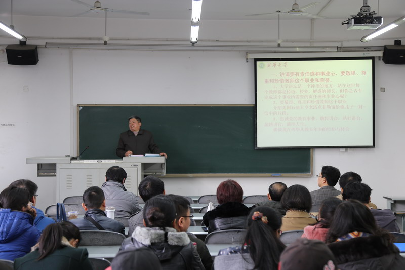 12月18日下午2:30,电气信息学院邀请原校党委书记秦昌明教授在6C-321举办了“如何上好一堂课”主题讲座。学院全体教职工参加了本次讲座。讲座由学院党委书记董秀成主持。