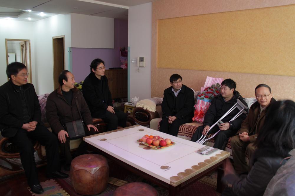 在新年即将来临之际,12月27日和12月30日,校党委书记张小南,校长孙卫国,副校长李劲松,校党委副书记王小林,副校长乔哲青、胡丹、王政书带领学校党办、校办、纪委、组织部、宣传部、校工会、人事处、离退处及人南校区相关负责人,分别看望慰问了学校离退休老领导和困难教职工,给他们带去了学校的关怀与温暖,送去了慰问金,并致以新年的问候和美好的祝福。 在离退休老领导的家中,学校领导详细询问他们的身体状况和生活情况,并嘱托工作人员要为老领导们做好服务。学校领导向老领导们通报了一年来学校各项事业发展的情况,虚心征求他们的意见和建议,并希望老同志们保重身体,一如既往地为学校的发展建言献策。离退休老领导们对学校领导的慰问表示衷心感谢,对学校近年来取得的成绩给予了高度评价,并表达了对学校发展的美好祝愿。 在困难教职工家中,学校领导关切地询问了他们的身体状况和生活情况,鼓励他们放宽心态,坚定信心,保持乐观向上的精神,努力战胜暂时的困难,并要求随行人员积极帮助困难职工解决实际问题。被慰问的教职工们深受感动,纷纷表示,在最困难的时刻能得到学校的关怀和慰问,更加坚定了自己克服困难、战胜病魔的信心和勇气,今后会更加努力工作,为学校的发展贡献自己的力量。 据悉,学校历来高度重视离退休老同志和困难教职工走访慰问工作,将其作为党的群众路线教育实践活动重要内容之一,积极帮助他们解决生活中的困难。学校要求相关职能部门深入了解,主动关心,各单位要及时走访困难教职工,帮助解决有关难题,把学校的关怀送到教职工的心坎上。 张小南书记一行看望老领导孙卫国校长一行看望困难教职工 |