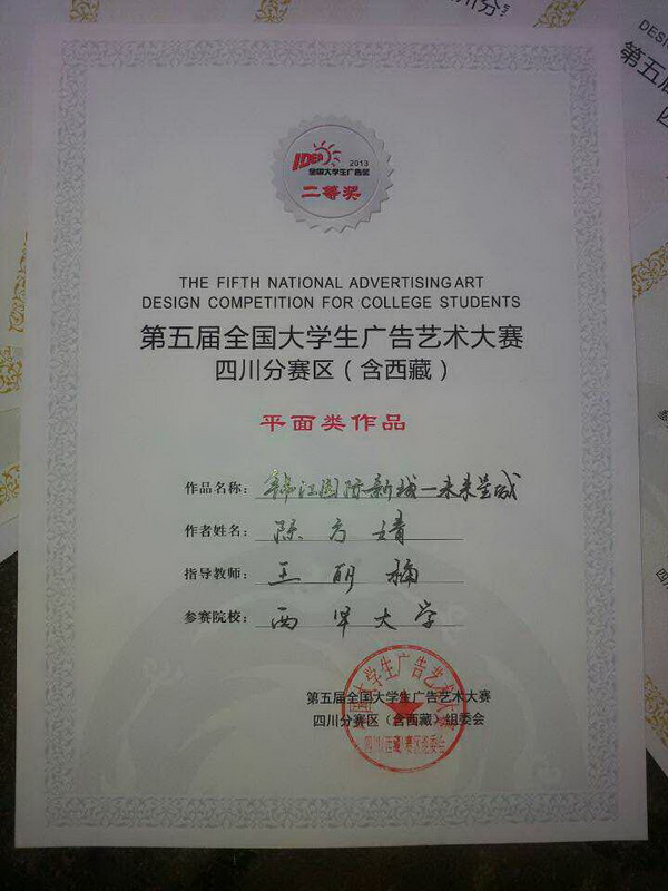 近日,第五届全国大学生广告艺术大赛四川分赛区比赛结果揭晓,Beat365艺术学院共选送50余件作品参加比赛,1件作品获二等奖,6件作品获优秀奖。