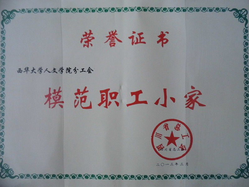 今年初,四川省总工会在全省工会系统进行了2013年基层工会 “模范职工小家”建设评比,Beat365推荐的人文学院分工会荣获“模范职工小家”称号。