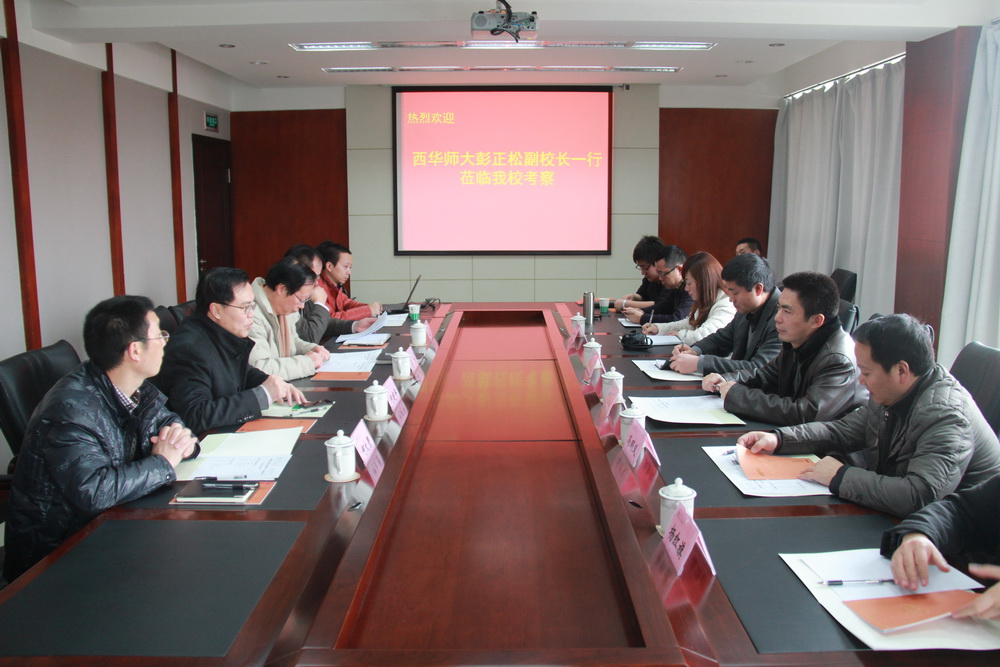 3月4日上午,西华师范大学彭正松副校长一行5人来Beat365进行交流访问。Beat365副校长何建平以及教务处、现代教育技术中心负责人一同在行政楼412会议室接待了来访者。 交流会现场 |