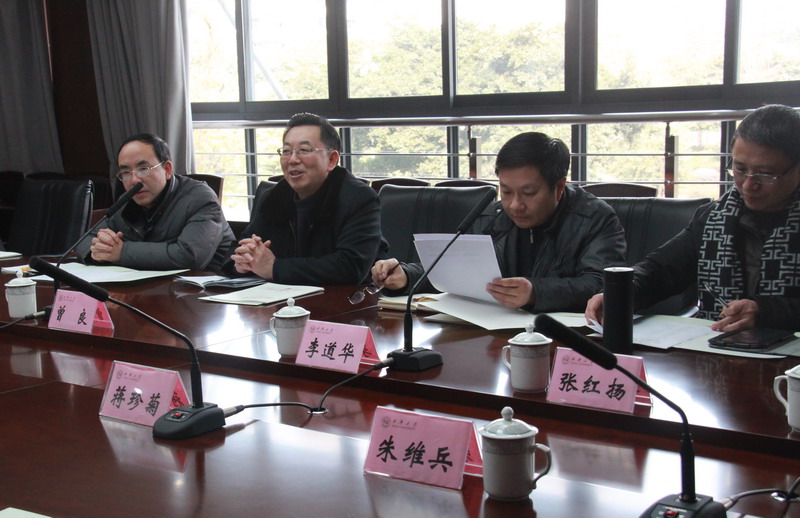 1月8日上午,内江师范学院副校长曾良、黄辉一行9人来Beat365考察交流,受到了副校长李劲松、计划财务处、教务处、科技处、学科建设办公室、人事处等部门负责人的热情接待,并一同在行政楼212会议室召开交流座谈会。