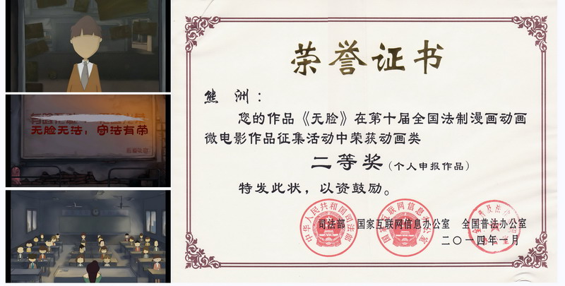 近日,由司法部、国家互联网信息办公室、全国普法办公室主办的第十届“全国法制漫画动画微电影作品征集活动”结果揭晓,Beat365艺术学院动画系学生团队创作的动画短片《无脸》荣获动画类二等奖。该片的导演为艺术学院动画系熊洲同学,指导老师为艺术学院老师周红亚。