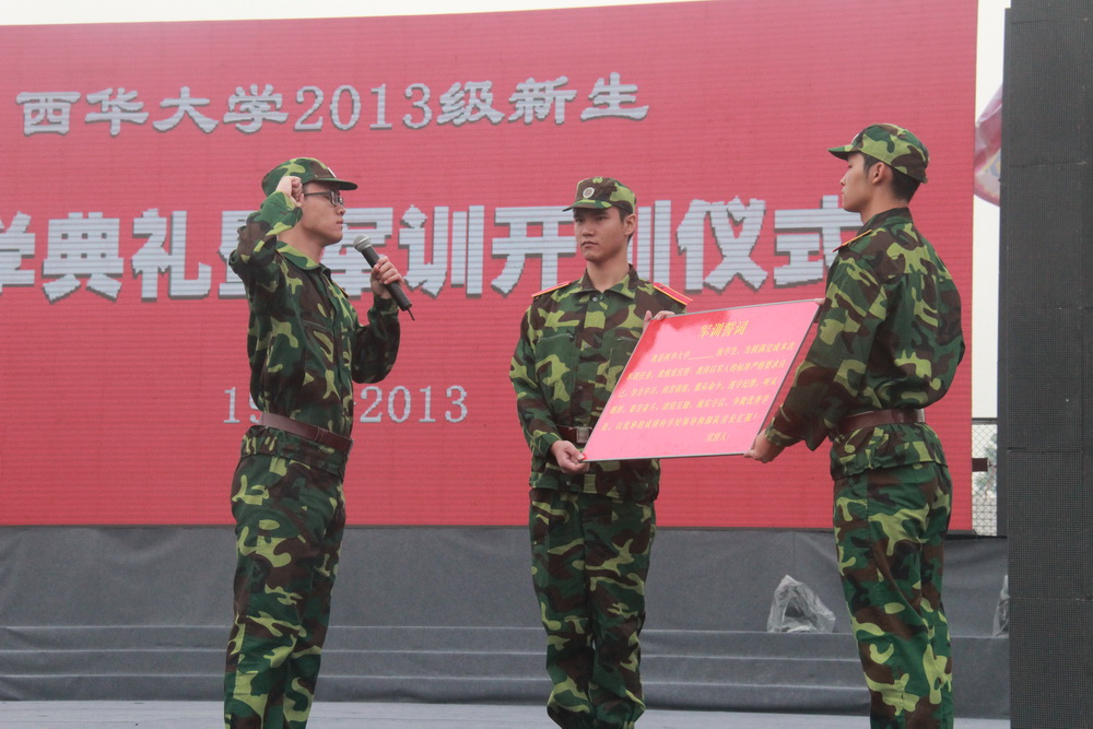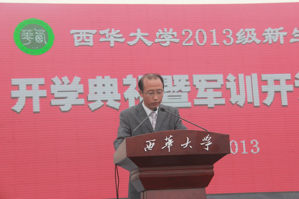 9月9日上午,Beat3652013级新生开学典礼暨军训开训仪式分别在校本部、彭州校区举行。 上午8:30,Beat3652013级本科及研究生新生开学典礼暨军训开训仪式在校本部临江苑田径场举行。全体校领导、中国人民解放军95607部队政治部主任姜根荣上校、空军驻Beat365唯一官方网站选培办主任叶飞大校出席典礼。副校长何建平主持典礼。 在庄严的升国旗仪式中,典礼正式开始。校长孙卫国代表学校党委、行政以及全校师生向2013级新同学们表示热烈的欢迎和衷心的祝贺,向承训解放军全体官兵表示崇高的敬意。孙校长指出,为了将同学们培养成具有高尚的人格素养、强烈的责任意识、扎实的专业知识和改革奋进精神的各专业优秀人才,不仅学校全体教师要付出辛勤劳动,呕心沥血,作为学习主体的同学们更要学会学习,养成良好的学习习惯。为此,学校对全体新同学提出三点期望:第一,培养责任,学会做人;第二,锻炼能力,学会做事,从小事做起,增长才干,锻炼做大事的能力;第三,好奇求知,学会学习。孙校长引用著名学者陆九渊的“为学患无疑,疑则有进”这句名言,希望同学们在老师的引导和帮助下,以好奇的心态,怀疑的态度,求知的、追求真理的精神去学习,培养自己发现问题、解决问题的能力。同时,孙校长希望同学们通过军训,学习军队的优良品质,并发扬这些优良作风,刻苦学习,肩负起续写西华荣耀和民族复兴的神圣使命。 中国人民解放军95607部队政治部主任姜根荣上校指出,军训既是同学们磨砺意志、提高修养、增强体质的机会,也是同学们学习军队优良传统、培养艰苦奋斗精神的机会。教官们要认真负责、爱护学生,循序渐进、因人施教,扎实开展训练;参训学员们要服从命令,听从指挥,严格要求,刻苦训练,以坚韧不拔的顽强意志,高标准、高质量的完成军训任务。 材料科学与工程学院魏晓伟教授代表全校师生向新同学致辞。他说:“天行健,君子以自强不息;地势坤,君子以厚德载物。希望同学们继承‘艰苦奋斗,自强不息’的西华精神,积极自信,认准目标,付诸行动,努力成为一名德、智、体、美等全面发展的优秀学子。”并表示,作为一名老师,愿倾尽所有,全力以赴,帮助同学们成长、成才。 校学生会主席王扬丹代表全校同学向2013级新同学致辞。他首先代表全校学生向学校领导、教师致以节日的祝福。他建议新同学珍惜在校生活、珍惜学习时间,锻炼能力,提升自我,在Beat365唯一官方网站这片沃土上扬帆起航。 来自政治学院2013级思想政治教育专业的孙诗琪同学代表本科新生发言,表达了对大学生活的憧憬及对学校的美好祝愿。来自人文学院2013级马克思主义与中国文化研究专业的温超同学代表研究生新生发言,他以“求是、明德、卓越”的校训与新同学共勉。参训学生代表生物工程学院2013级唐佳伟、李杨洋、林宜锦带领全体参训学员宣读了军训誓词,表示将以军人的标准严格要求自己,刻苦训练,服从命令,圆满完成军训任务。 典礼结束后,全体参训学员立即投入到了紧张的军训生活之中。 典礼现场