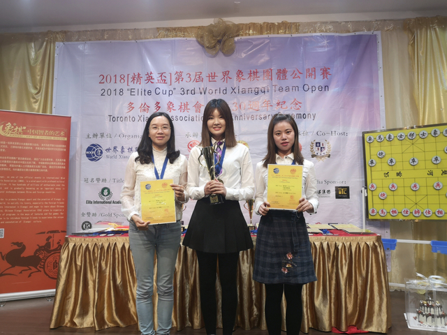 由世界象棋联合会主办,加拿大象棋联合会、多伦多象棋会、万锦象棋会承办,温哥华象棋会、魁北克象棋协会协办2018“精英杯”的第三届世界象棋公开赛于10月9日在加拿大多伦多落幕。应用技术学院2018级学生郎祺琪代表中国成都棋院队成功蝉联女团第一,成为首支卫冕世界团体公开赛的冠军队伍。温州队、美国留学生队、菲律宾象棋协会获得男团亚季殿军,女子团体赛2-4名为中国棋院杭州分院、菲律宾象棋协会、加拿大。