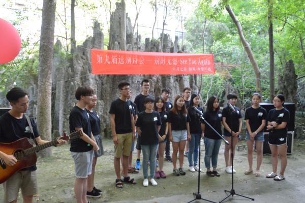 6718时,随着主持人深情的话语传入耳畔,精彩的节目向大家一一呈现。首先是外文部的小伙伴们带来诗朗诵《青春》,大家不禁感叹时光荏苒,向青春致敬。接着是中文部的《最后一个夏天,最美的纪念》诗朗诵四年的时光最美的年华,相信那些记忆都已藏心间。随后,导播部和网络部合唱一首歌曲《往事只能回味》,一曲一调,挑动着离人的心弦中文部的《流金岁月》细数着西华的点滴,将听众的思绪带入那一幕幕熟悉的场景中;外文部的特色经典歌曲《see you again》,动容的吉他伴奏、流利的英文表达,和着别时淡淡的愁绪,一起飘荡林间广宣部和秘书处共谱的《离别的季节》,让此刻的记忆陪伴着即将离去的人儿。