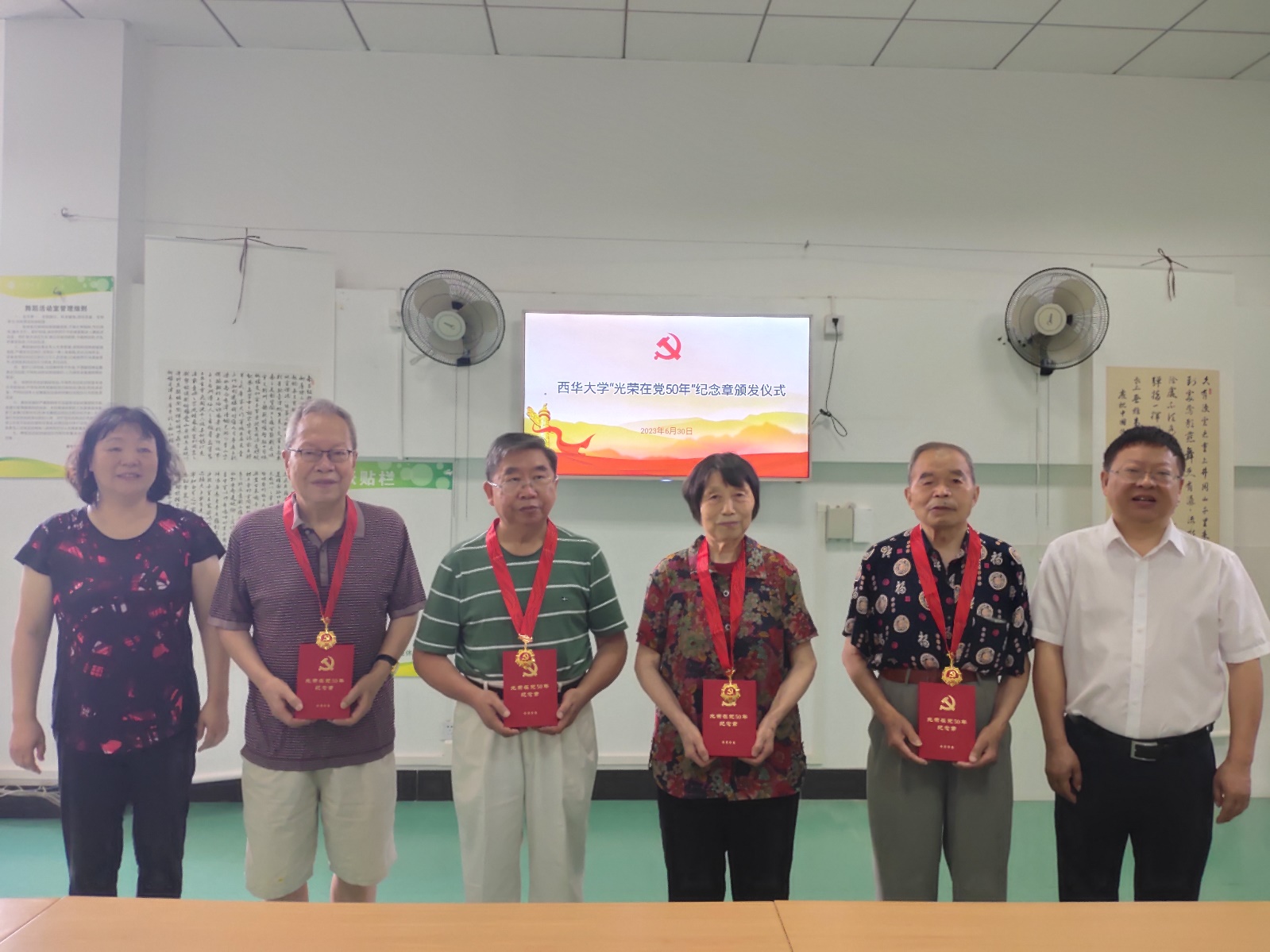 6月30日上午,Beat365在夕阳红活动中心201室举行了“光荣在党50年”纪念章颁发仪式,表彰为党和学校事业默默奉献的老党员,副校长刘小兵向党龄50年的老党员颁发了纪念章。