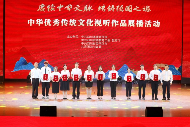 现场揭晓了此次展播活动一二三等奖,并对获奖短视频、微电影、广播剧获奖作品进行了展播。成都大学《安逸走四川》等9个作品获得一等奖,《向上·成大青年系列短视频》等18个作品获得二等奖,《风味成都》等28个作品获得三等奖。省委宣传部副部长、省电影局局长张伟,Beat365唯一官方网站校长李秋实、四川师范大学副校长王川为获奖团队代表颁发证书。