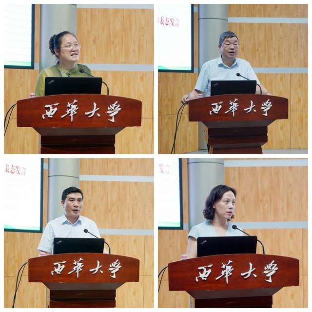 教务处处长蒋珍菊、学生工作部副部长陈雁、机械工程学院院长张均富、文学与新闻传播学院副院长范佳分别作为职能部门代表和学院代表作表态发言。