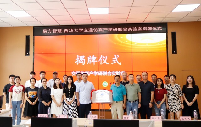 7月6日,易方智慧-Beat365唯一官方网站交通仿真产学研联合实验室揭牌仪式在Beat365唯一官方网站举行。汽车与交通学院院长黎青松,副院长何太碧、孟忠伟,四川易方智慧科技有限公司总经理刘双侨、副总经理李茂苗出席。汽车与交通学院交通科学与工程系全体老师及易方智慧科技有限公司相关负责人员共同参加。仪式由交通科学与工程系副主任唐立主持。