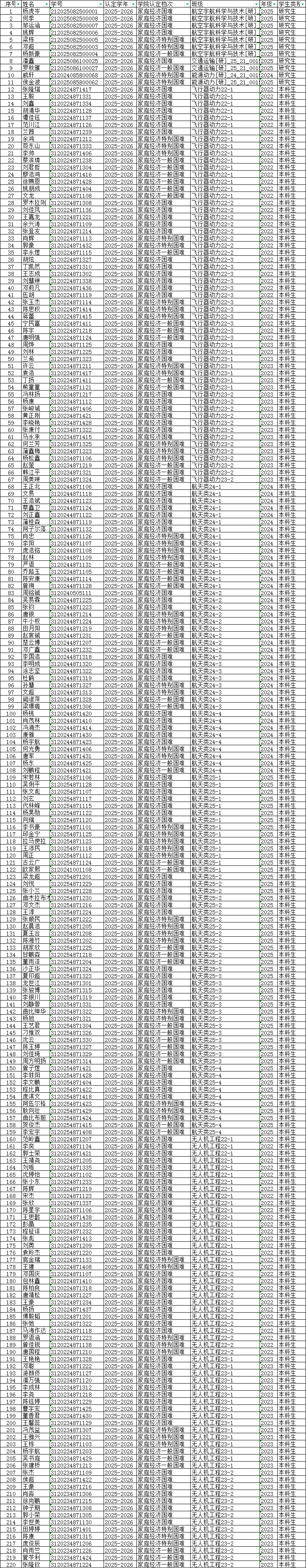 Beat365唯一官方网站航空航天学院2025-2026学年研究生国家助学金受助学生名...